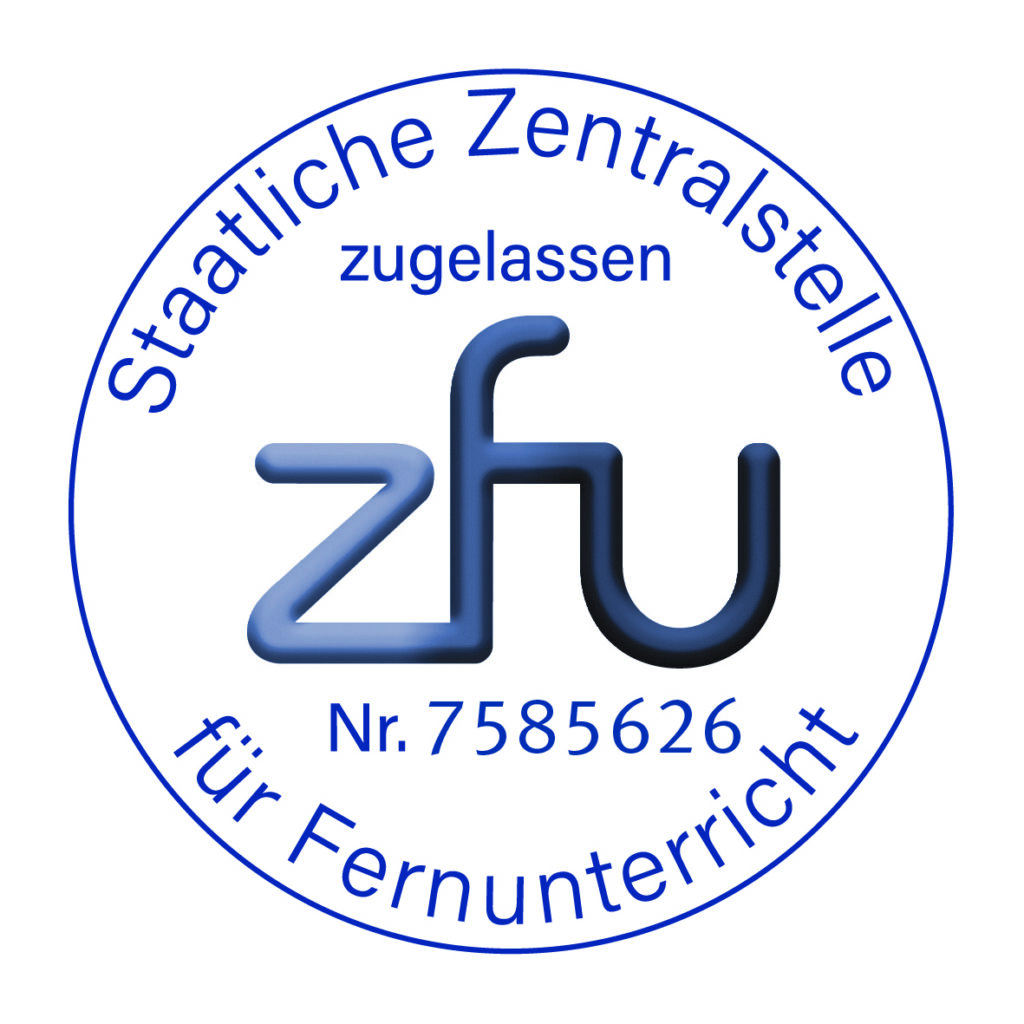 Der Lehrgang ist von der Staatlichen Zentralstelle für Fernunterricht (ZFU) unter der Nummer 7585626 zugelassen.